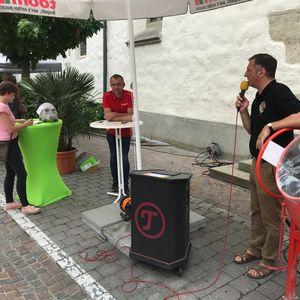 Der Förderverein für Brauchtums- und Jugendpflege der Dorauszunft Saulgau e.V. war am Happy Family Day 2018 wieder mit dabei und machte die Aktion 'Tunk den Promi' ... amüsant & nass war es für alle.